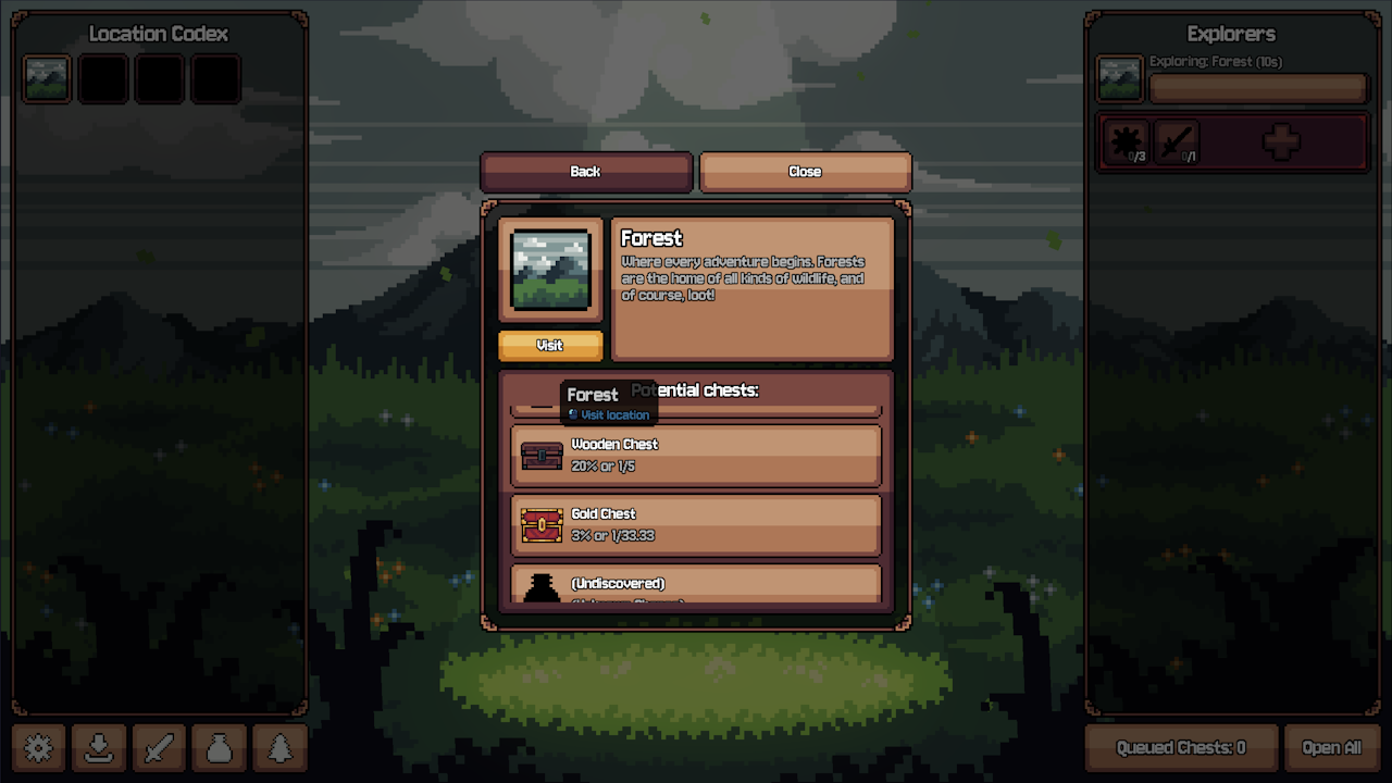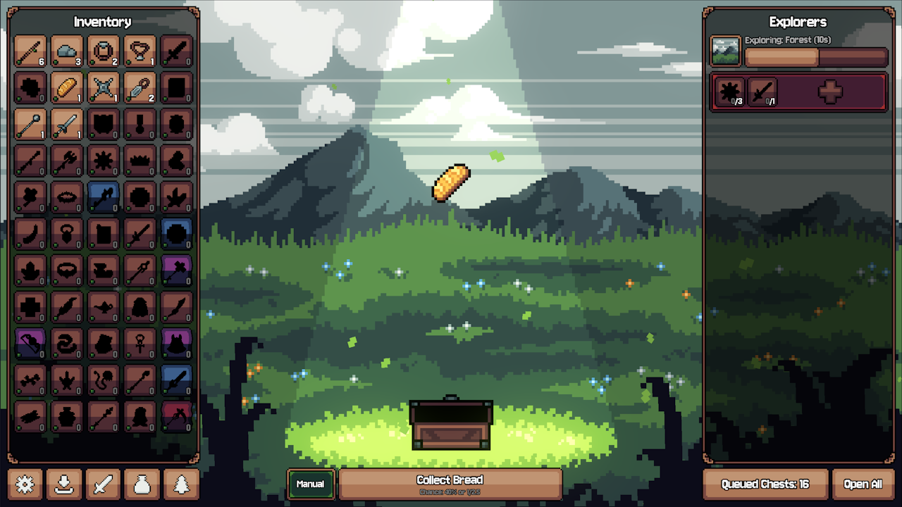Lootvale is a fantasy idle game where the goal is to grow your collection of loot! Hire explorers to scavange locations and biomes for you, and bring back the precious chests they find! Can you discover the rarest loot this world has to offer?